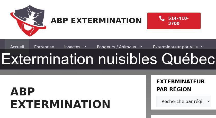 Visitez le site Extermination Nuisibles Québec : https://abp-extermination.com/