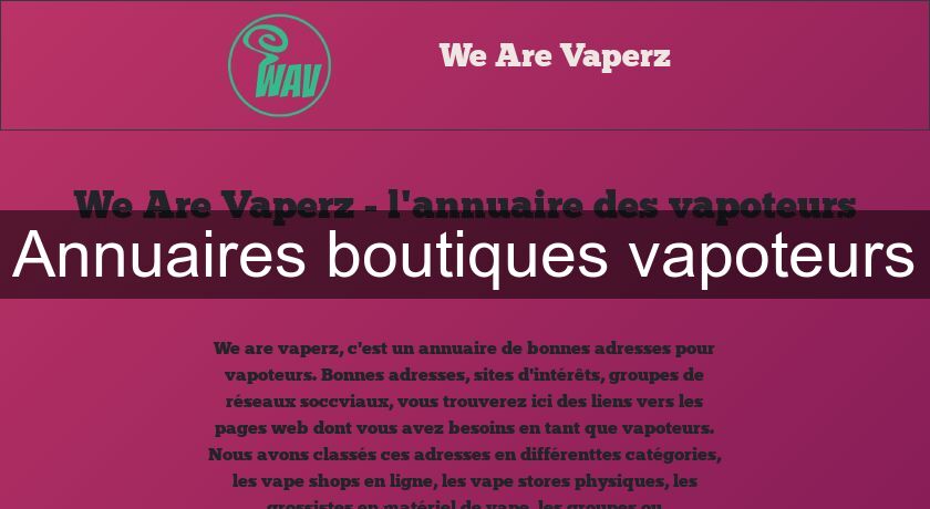 We are vaperz est un annuaire des meilleurs sites web et adresses utiles aux vapoteurs.