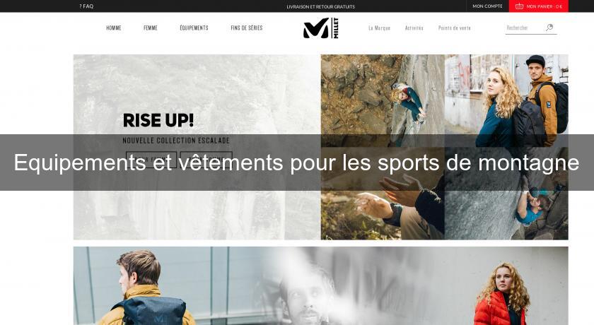 Pour la glisse comme pour la randonnée ou l'escalade, le magasin en ligne Millet vous fournit des équipements de haute qualité, des vêtements techniques, résistants au froid, aux intempéries, des chaussures pour des pieds bien maintenus et au chaud, des vestes, des doudounes, des pantalons, mais aussi des sacs à dos, des gants, des sous vêtements, pour tous les sports et loisirs de montagne