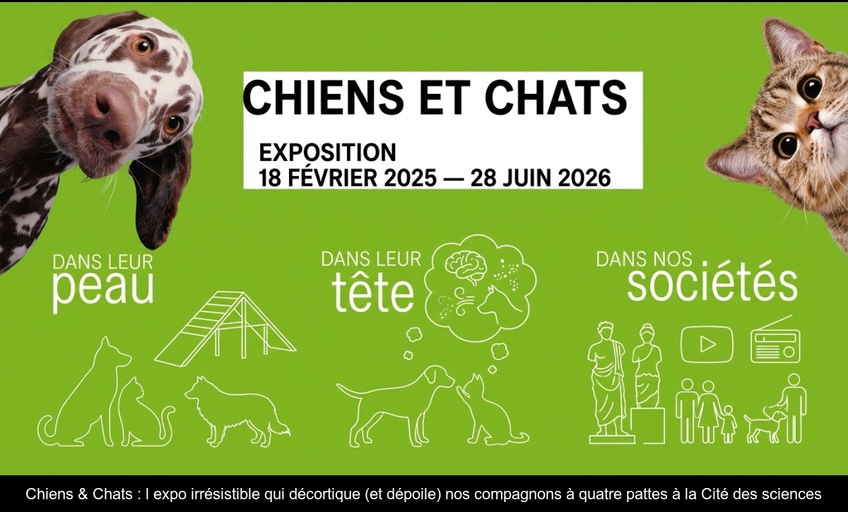 Ronronthérapie ou promenade en laisse ? Qu'on soit plutôt team croquettes ou fan de boîtes de thon, impossible de résister à la nouvelle exposition " Chiens & Chats " qui débarque à la Cité des sciences du 18 février 2025 au 30 août 2026. Une plongée sensorielle, scientifique et délicieusement ludique dans l'univers de nos boules de poils préférées.