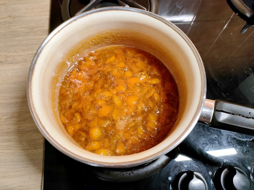 1- Dès que la confiture de kumquat devient sirupeuse, ôtez-la du feu.