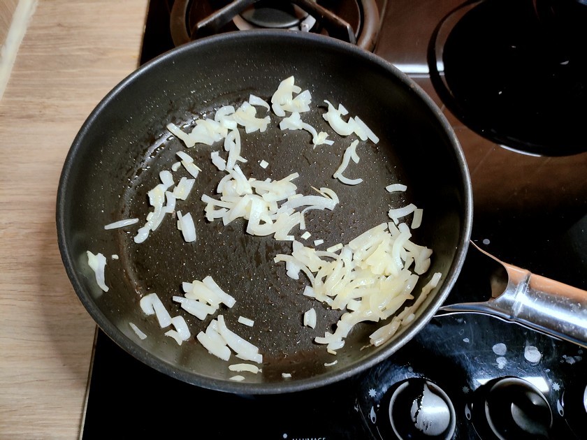 3- Faites revenir les cébettes émincées dans l'huile d'olive pendant environ 5 minutes, jusqu'à ce qu'elles soit dorées.