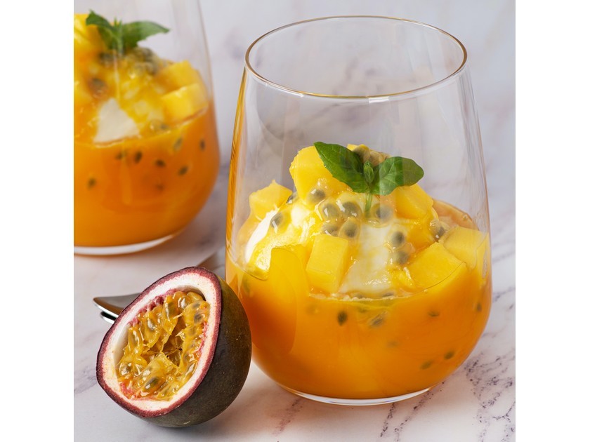 Le fruit de la passion fait partie des 5 fruits exotiques à servir pour les fêtes car il est facile à déguster et sa saveur fait voyager les papilles. Il suffit de l'ouvrir pour savourer ses nombreuses petites graines de couleur jaune orangé.