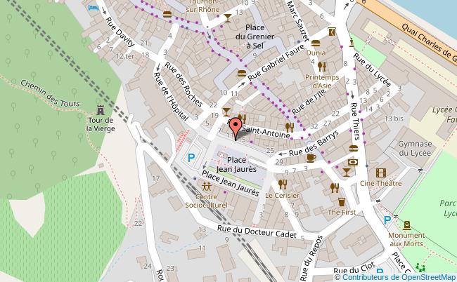 << Place Carnot << Maison Municipale Pour Tous De Tournon << Hôtel De La Tourette, Place St Julien << Effets Et Matières Boutique De Créateurs << Eden Parc /le Jardin D'eden