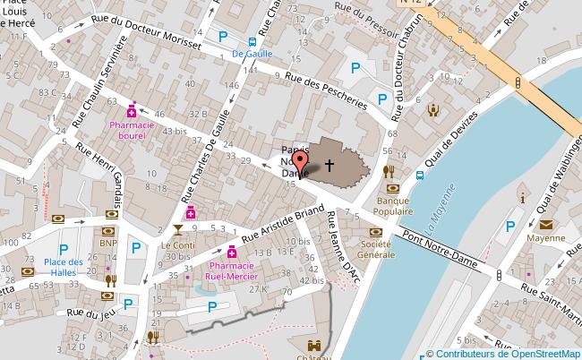 Basilique Notre-dame, Rue Du Sergent Louvrier >> Boulevard François Mitterrand >> Boulevard Volney, Salle Polyvalente >> Centre D'action Culturel - Le Kiosque >> Centre-ville De Mayenne >>