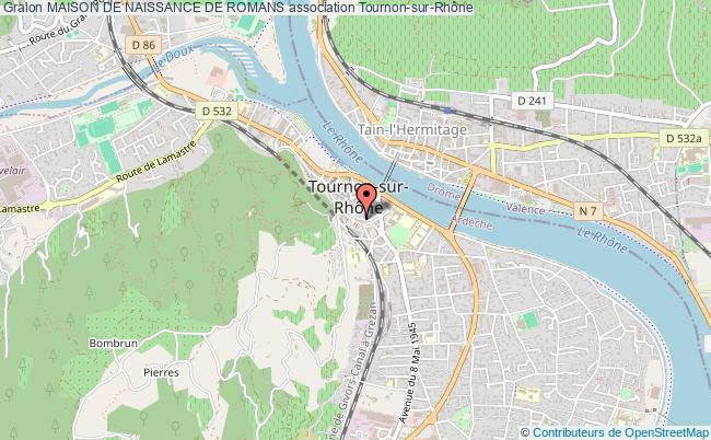Le siège de l'association Maison De Naissance De Romans se situe dans la ville de Tournon-sur-Rhône : 11 place Jean Jaures 07300 Tournon-sur-Rhône