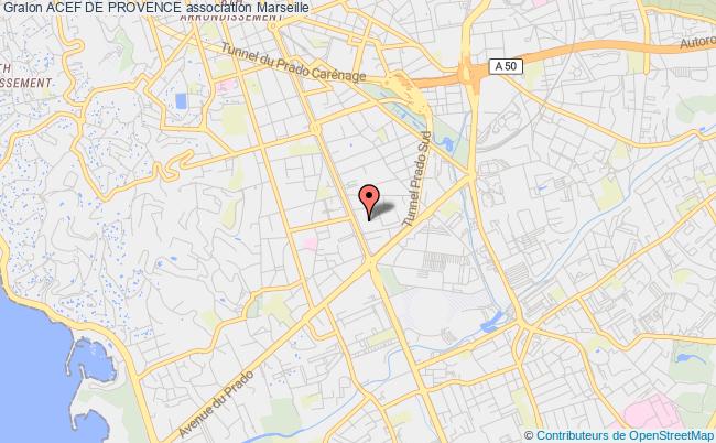 Le siège de l'association Acef De Provence se situe dans la ville de Marseille : 247 Avenue du prado 13008 Marseille