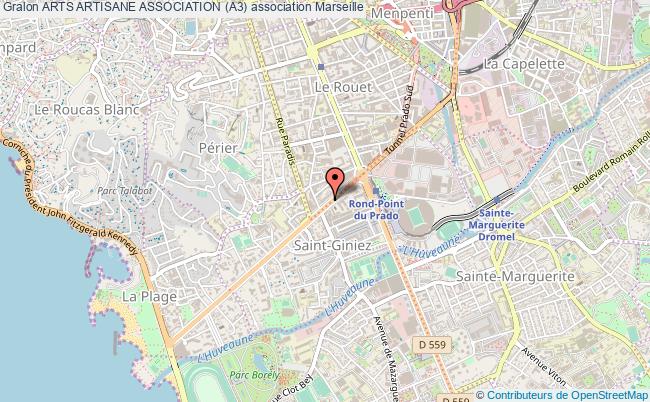 Le siège de l'association Arts Artisane Association (a3) se situe dans la ville de Marseille : 360 Avenue du Prado 13008 Marseille