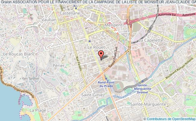 Le siège de l'association Association Pour Le Financement De La Campagne De La Liste De Monsieur Jean-claude Gaudin Pour Les Elections Municipales Des 9 Et 16 Mars 2008 se situe dans la ville de Marseille : 241 Avenue du Prado 13008 Marseille