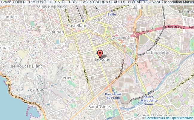 Le siège de l'association Contre L'impunite Des Violeurs Et Agresseurs Sexuels D'enfants (civase) se situe dans la ville de Marseille : 180 Avenue du Prado 13008 Marseille