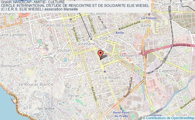 Informations et situation de l'association Handicap- amitie- culture cercle international d'etude de rencontre et de solidarite elie wiesel (c.i.e.r.s. elie wiesel) Aide sociale aux personnes en situation de handicap dans la ville de Marseille. thèmes : famille, Marseille, région