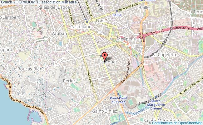 Le siège de l'association Yoopadom 13 se situe dans la ville de Marseille : 180 Avenue du Prado 13008 Marseille