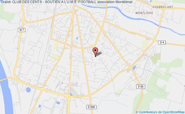 Le siège de l'association Club Des Cents - Soutien A L'u.m.s. Football se situe dans la ville de Montélimar : 20 Rue Edith Piaf 26200 Montélimar