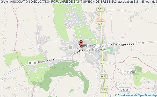 Le siège de l'association Association D'education Populaire De Saint-simeon-de-bressieux se situe dans la ville de Saint-Siméon-de-Bressieux : Place de l''Eglise 38870 Saint-Siméon-de-Bressieux