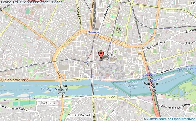 Le siège de l'association Cod'bar se situe dans la ville de Orléans : 24 Rue Jeanne d'Arc 45000 Orléans