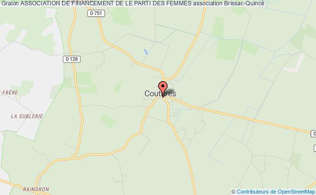Le siège de l'association Association De Financement De Le Parti Des Femmes se situe dans la ville de Brissac-Quincé : Place Louis Tharault 49320 Brissac Loire Aubance
