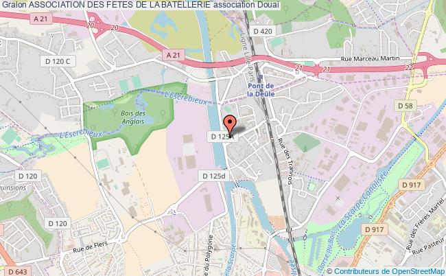 Le siège de l'association Association Des Fetes De La Batellerie se situe dans la ville de Douai : 154 Quai de Boisset 59500 Douai