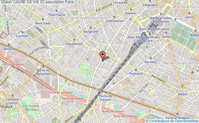 Le siège de l'association Cadre De Vie 52 se situe dans la ville de Paris : 52 Rue Brancion 75015 Paris