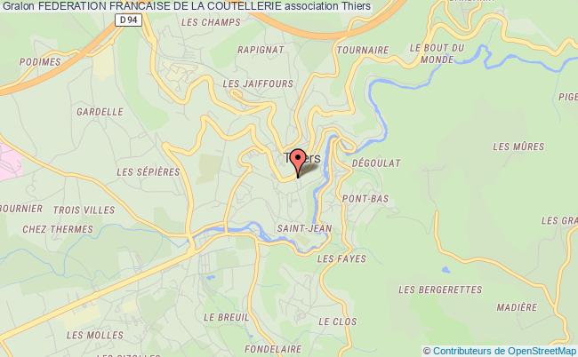 Le siège de l'association Federation Francaise De La Coutellerie se situe dans la ville de Thiers : 1 Rue Conchette 63300 Thiers