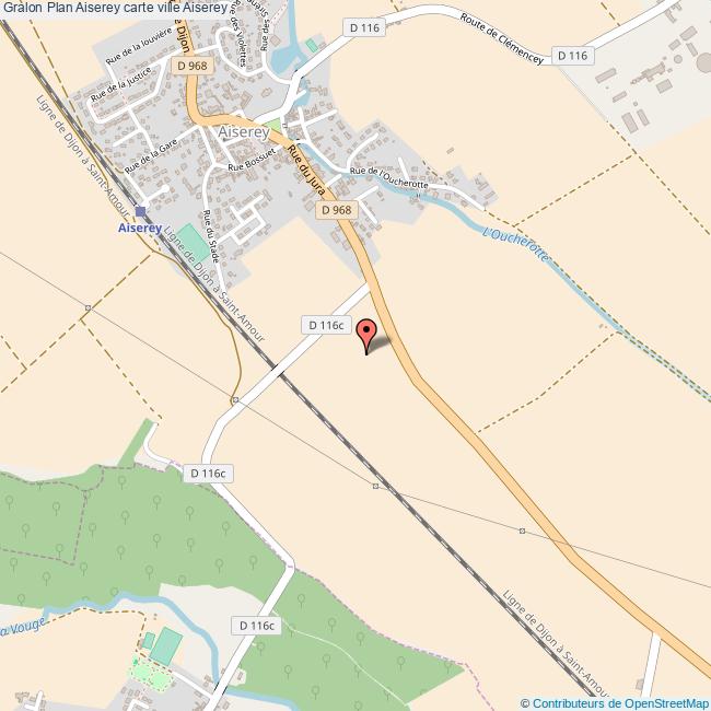 Plan de la ville de Aiserey, cliquer dessus pour obtenir un plan interactif avec niveaux de zoom. La Ville de Aiserey dans le département Côte-d'Or a une population de 1373 habitants, une superficie de 11 Km2, soit une densité de population pour la carte de Aiserey de 125 Habitants/Km2 et une altitude de 623 m.
