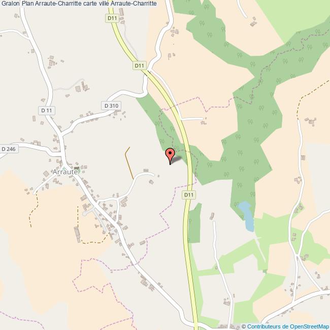 Plan de la ville de Arraute-Charritte, cliquer dessus pour obtenir un plan interactif avec niveaux de zoom. La Ville de Arraute-Charritte dans le département Pyrénées-Atlantiques a une population de 373 habitants, une superficie de 23 Km2, soit une densité de population pour la carte de Arraute-Charritte de 16 Habitants/Km2 et une altitude de 249 m.