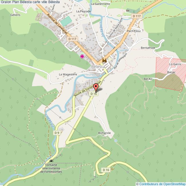Plan de la ville de Bélesta, cliquer dessus pour obtenir un plan interactif avec niveaux de zoom. La Ville de Bélesta dans le département Ariège a une population de 1029 habitants, une superficie de 27 Km2, soit une densité de population pour la carte de Bélesta de 38 Habitants/Km2 et une altitude de 1089 m.