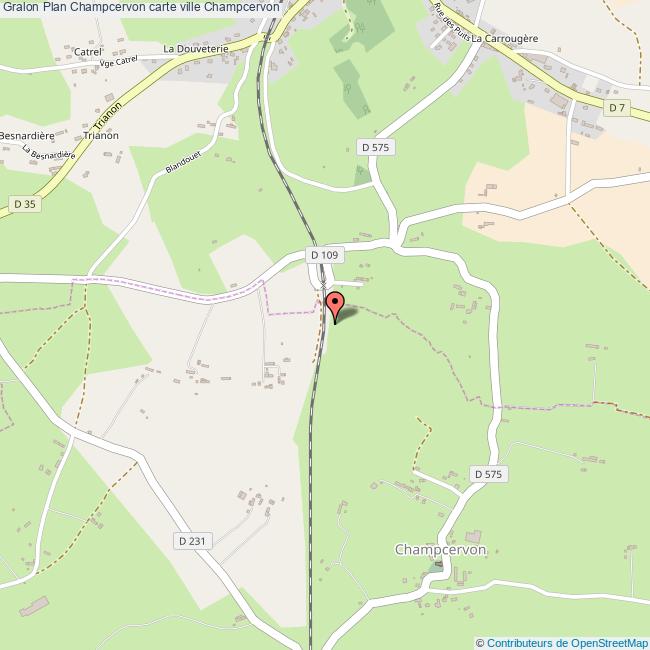 Plan de la ville de Champcervon, cliquer dessus pour obtenir un plan interactif avec niveaux de zoom. La Ville de Champcervon dans le département Manche a une population de 357 habitants, une superficie de 10 Km2, soit une densité de population pour la carte de Champcervon de 36 Habitants/Km2 et une altitude de 374 m.