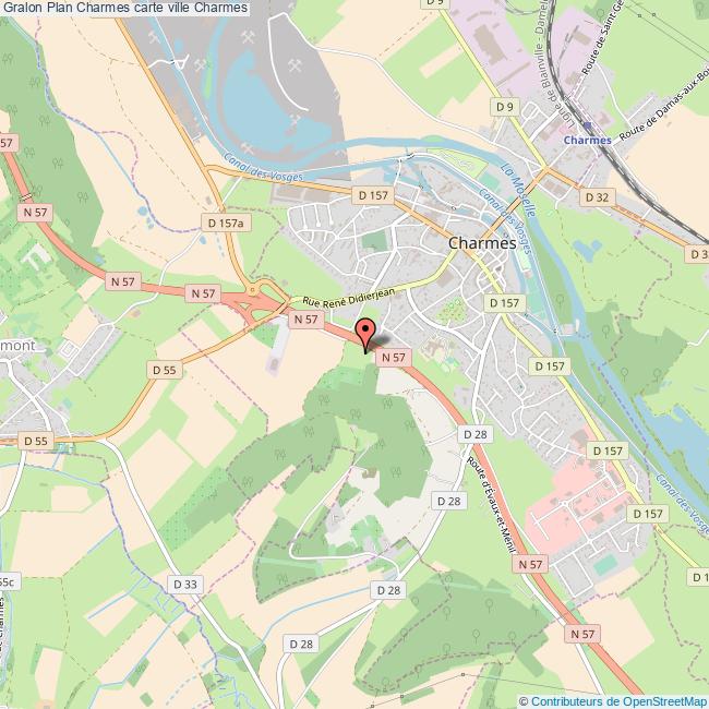 Plan de la ville de Charmes, cliquer dessus pour obtenir un plan interactif avec niveaux de zoom. La Ville de Charmes dans le département Vosges a une population de 4695 habitants, une superficie de 23 Km2, soit une densité de population pour la carte de Charmes de 204 Habitants/Km2 et une altitude de 364 m.