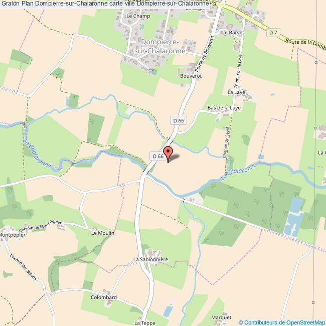 Plan de la ville de Dompierre-sur-Chalaronne, cliquer dessus pour obtenir un plan interactif avec niveaux de zoom. La Ville de Dompierre-sur-Chalaronne dans le département Ain a une population de 429 habitants, une superficie de 5 Km2, soit une densité de population pour la carte de Dompierre-sur-Chalaronne de 86 Habitants/Km2 et une altitude de 698 m.