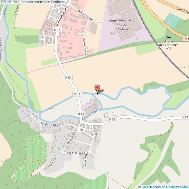 Plan de la ville de Fontaine, cliquer dessus pour obtenir un plan interactif avec niveaux de zoom. La Ville de Fontaine dans le département Aube a une population de 260 habitants, une superficie de 6 Km2, soit une densité de population pour la carte de Fontaine de 43 Habitants/Km2 et une altitude de 1843 m.