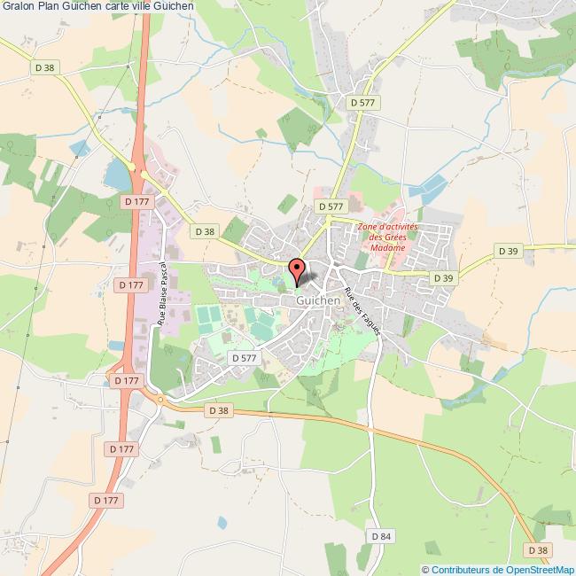 Plan de la ville de Guichen, cliquer dessus pour obtenir un plan interactif avec niveaux de zoom. La Ville de Guichen dans le département Ille-et-Vilaine a une population de 8231 habitants, une superficie de 43 Km2, soit une densité de population pour la carte de Guichen de 191 Habitants/Km2 et une altitude de 295 m.