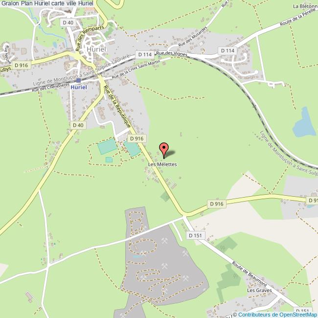 Plan de la ville de Huriel, cliquer dessus pour obtenir un plan interactif avec niveaux de zoom. La Ville de Huriel dans le département Allier a une population de 2682 habitants, une superficie de 35 Km2, soit une densité de population pour la carte de Huriel de 77 Habitants/Km2 et une altitude de 1076 m.