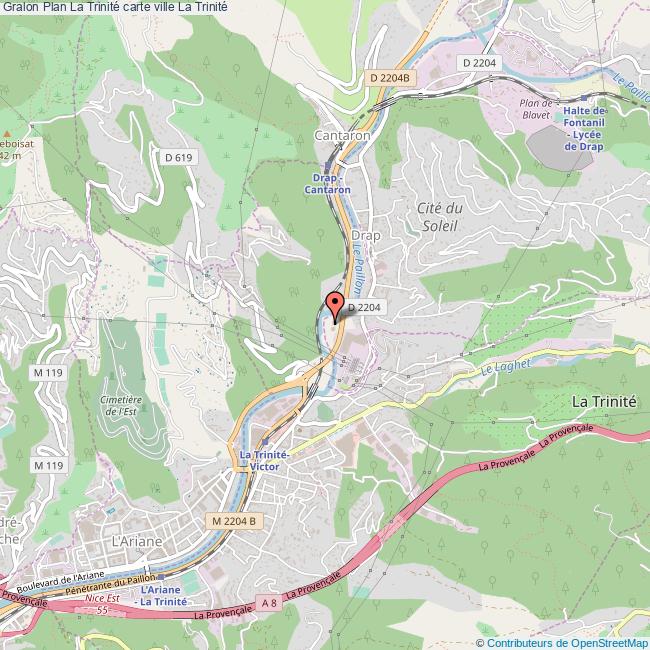 Plan de la ville de La Trinité, cliquer dessus pour obtenir un plan interactif avec niveaux de zoom. La Ville de La Trinité dans le département Alpes-Maritimes a une population de 10222 habitants, une superficie de 15 Km2, soit une densité de population pour la carte de La Trinité de 681 Habitants/Km2 et une altitude de 980 m.
