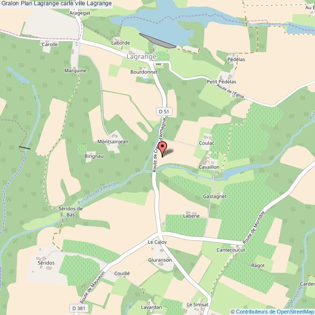 Plan de la ville de Lagrange, cliquer dessus pour obtenir un plan interactif avec niveaux de zoom. La Ville de Lagrange dans le département Landes a une population de 202 habitants, une superficie de 21 Km2, soit une densité de population pour la carte de Lagrange de 10 Habitants/Km2 et une altitude de 1929 m.
