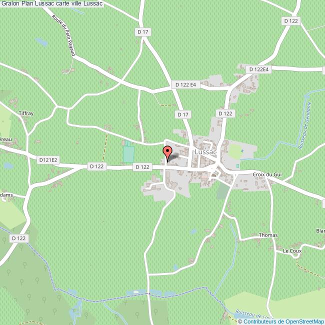 Plan de la ville de Lussac, cliquer dessus pour obtenir un plan interactif avec niveaux de zoom. La Ville de Lussac dans le département Gironde a une population de 1284 habitants, une superficie de 23 Km2, soit une densité de population pour la carte de Lussac de 56 Habitants/Km2 et une altitude de 213 m.