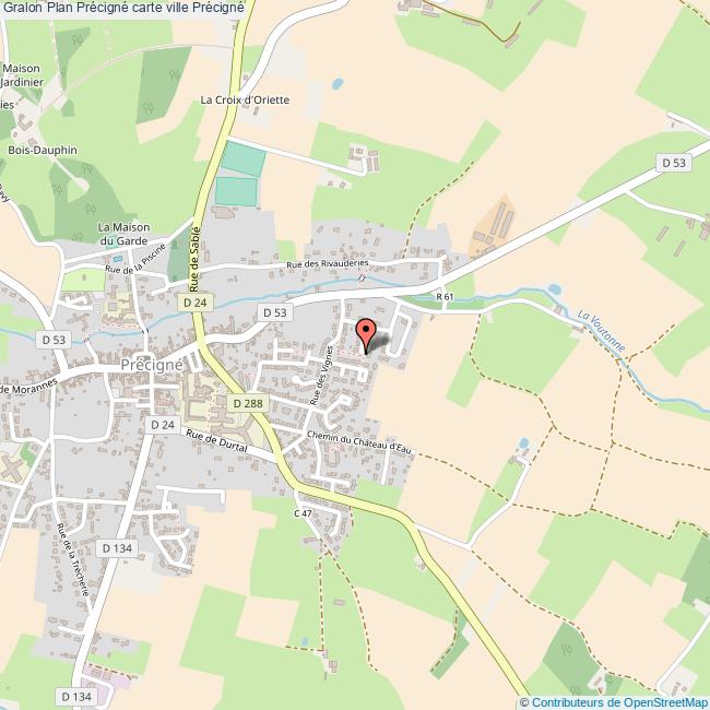 Plan de la ville de Précigné, cliquer dessus pour obtenir un plan interactif avec niveaux de zoom. La Ville de Précigné dans le département Sarthe a une population de 2989 habitants, une superficie de 58 Km2, soit une densité de population pour la carte de Précigné de 52 Habitants/Km2 et une altitude de 137 m.