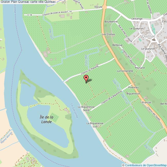 Plan de la ville de Quinsac, cliquer dessus pour obtenir un plan interactif avec niveaux de zoom. La Ville de Quinsac dans le département Gironde a une population de 2160 habitants, une superficie de 8 Km2, soit une densité de population pour la carte de Quinsac de 270 Habitants/Km2 et une altitude de 16 m.