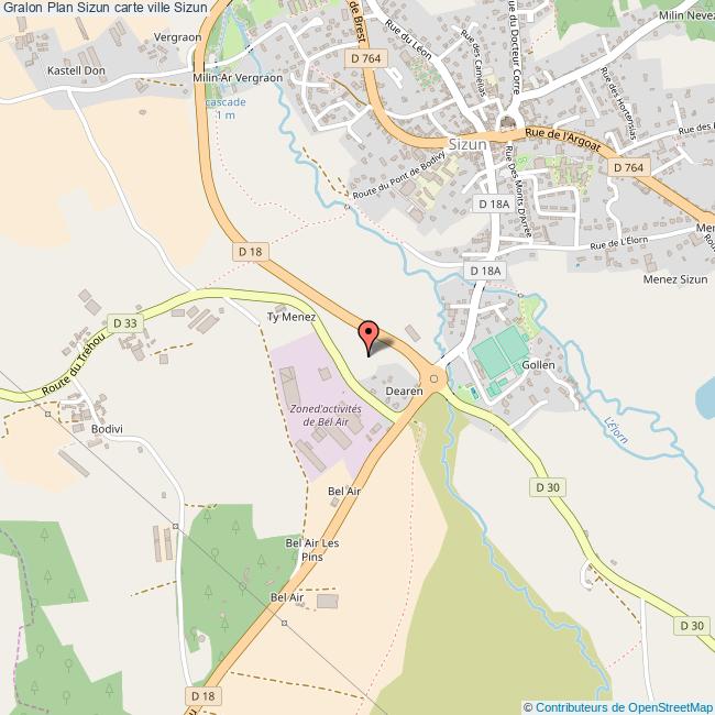 Plan de la ville de Sizun, cliquer dessus pour obtenir un plan interactif avec niveaux de zoom. La Ville de Sizun dans le département Finistère a une population de 2260 habitants, une superficie de 58 Km2, soit une densité de population pour la carte de Sizun de 39 Habitants/Km2 et une altitude de 321 m.