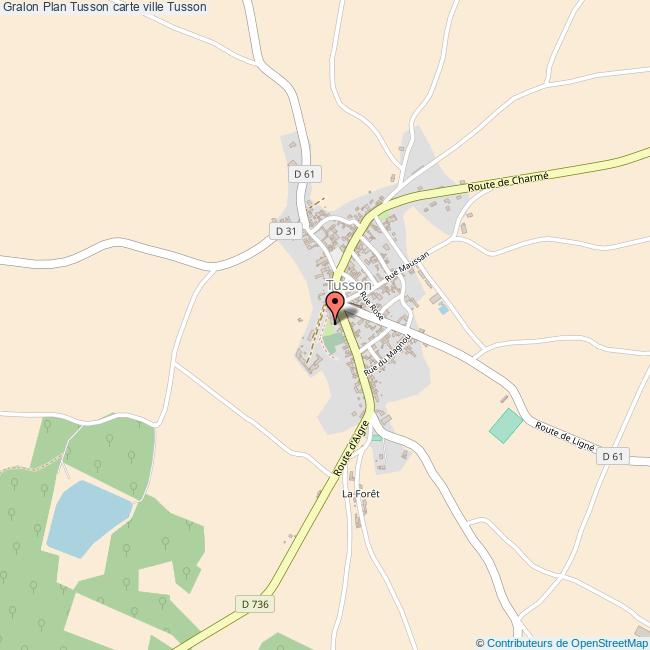 Plan de la ville de Tusson, cliquer dessus pour obtenir un plan interactif avec niveaux de zoom. La Ville de Tusson dans le département Charente a une population de 222 habitants, une superficie de 14 Km2, soit une densité de population pour la carte de Tusson de 16 Habitants/Km2 et une altitude de 433 m.