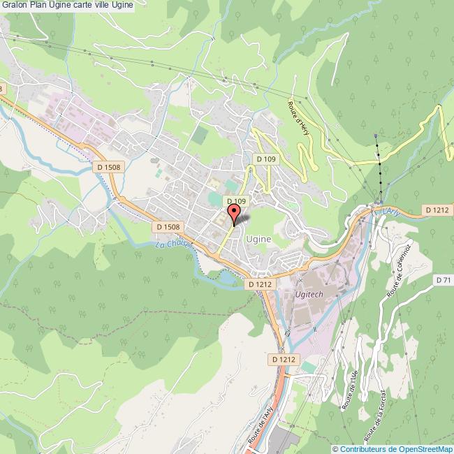 Plan de la ville de Ugine, cliquer dessus pour obtenir un plan interactif avec niveaux de zoom. La Ville de Ugine dans le département Savoie a une population de 7042 habitants, une superficie de 57 Km2, soit une densité de population pour la carte de Ugine de 124 Habitants/Km2 et une altitude de 1364 m.