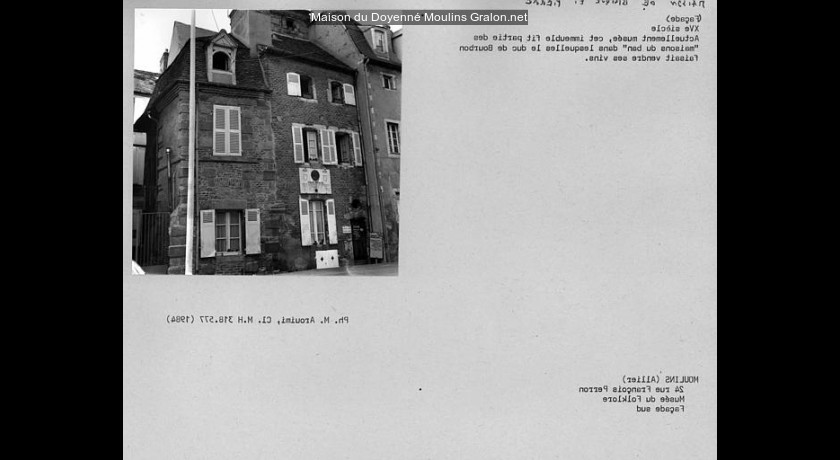 Il s'agit d'une maison construite à la fin du 15e siècle, face au chevet de la collégiale, probablement érigée par le duc Pierre II de Bourbon.
