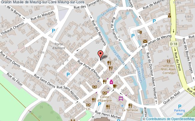 18 km d’Orléans, direction Blois - Autoroute A10, sortie Meung-sur-Loire ; Gare SNCF de Meung-sur-Loire (ligne Paris-Tours) ; parking Place du Maupas (à 50m) et parking du Mail (à 500m)